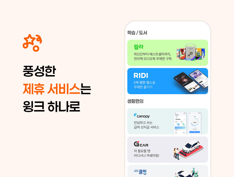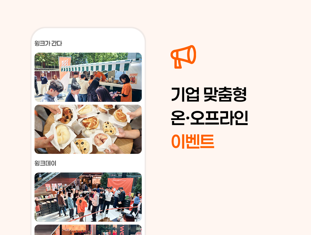 We Make Interactive Commerce 매일 쓰는 복지, 일하는 일상을 바꾸다 일하는 하루 속 자연스럽게 스며드는 생활형 복지 플랫폼 윙크 WEINC Our Impact 윙크만 가능한 경쟁력, 1 DAY = 1 PAY 윙크 미리보기 기업수 개 0 가맹점수 +개 0 윙크 평균 CVR % 0 *국내 이커머스 평균 CVR 2.1% 재구매주기 일 0 WEINC 그래서 윙크 는 매일 사용하게 됩니다 Our WEINC 윙크는 일하는 매일이 조금 더 즐거울 수 있도록 고민합니다 작은 일상 속 매일 쓸 수 있는 혜택을 만들어가는 윙크 오늘티켓 할인 혜택과 함께, 윙크오더로 포장과 예약까지 편하게 이용할 수 있습니다. 쇼핑 일상에 꼭 필요한 아이템을 임박상품, 공동구매 등 다양한 혜택으로 합리적으로 제공합니다. 제휴 서비스 생활편의·헬스케어·학습/도서 등 일상에 바로 닿는 제휴 혜택으로 복지 카테고리를 한 번에 확장합니다. 브랜드티켓 전국 어디서나 이용 가능한 인기 브랜드 모바일 쿠폰으로 모든 임직원에게 동일한 혜택을 제공합니다. 여행·레저 숙박, 레저, 액티비티 등 다양한 여행·레저 상품으로 일상에 필요한 리프레시를 더합니다. 이벤트 임직원 참여를 자연스럽게 이끄는 맞춤형 이벤트로 기업 문화에 활력을 더합니다. 윙크와 함께합니다 복지를 넘어 일상 속 혜택을 향해 Our Business 그래서, 윙크입니다 WEINC News 최신 뉴스 2025-12-19 코니아랩플러스, 기업 임직원 혜택 확대…머니박스와 NDA체결 VIEW MORE 2025-12-08 기업복지 플랫폼 윙크(weinc), HR 실무자 주목받은 ‘AI 맞춤형 복지’ 제안 VIEW MORE 2025-11-07 코니아랩플러스·PAYCO, ‘한국장학재단 교육급여 바우처 전용몰’ 론칭 VIEW MORE 2025-10-27 코니아랩플러스, 레드리본사회적협동조합과 사회적 가치 실현 나선다 VIEW MORE 2025-09-18 코니아랩플러스·유니에스, 혹서기 복지 이벤트 성료…임직원 계절 복지 강화 나선다 VIEW MORE