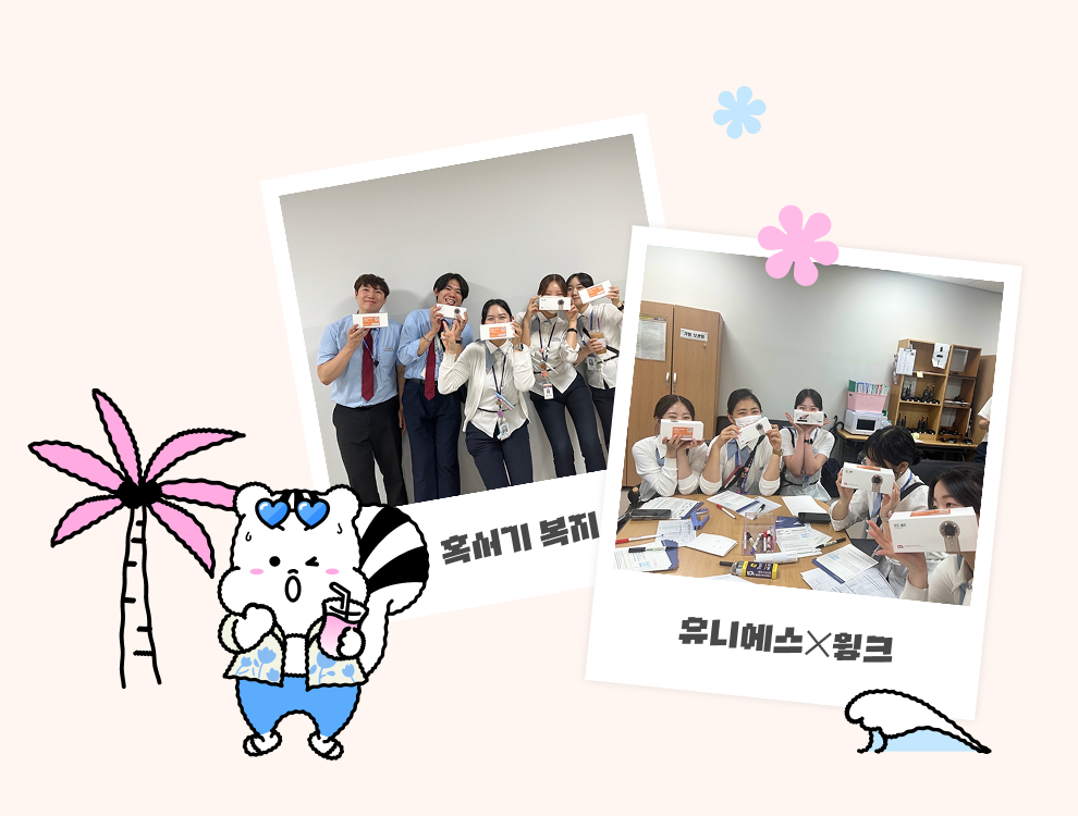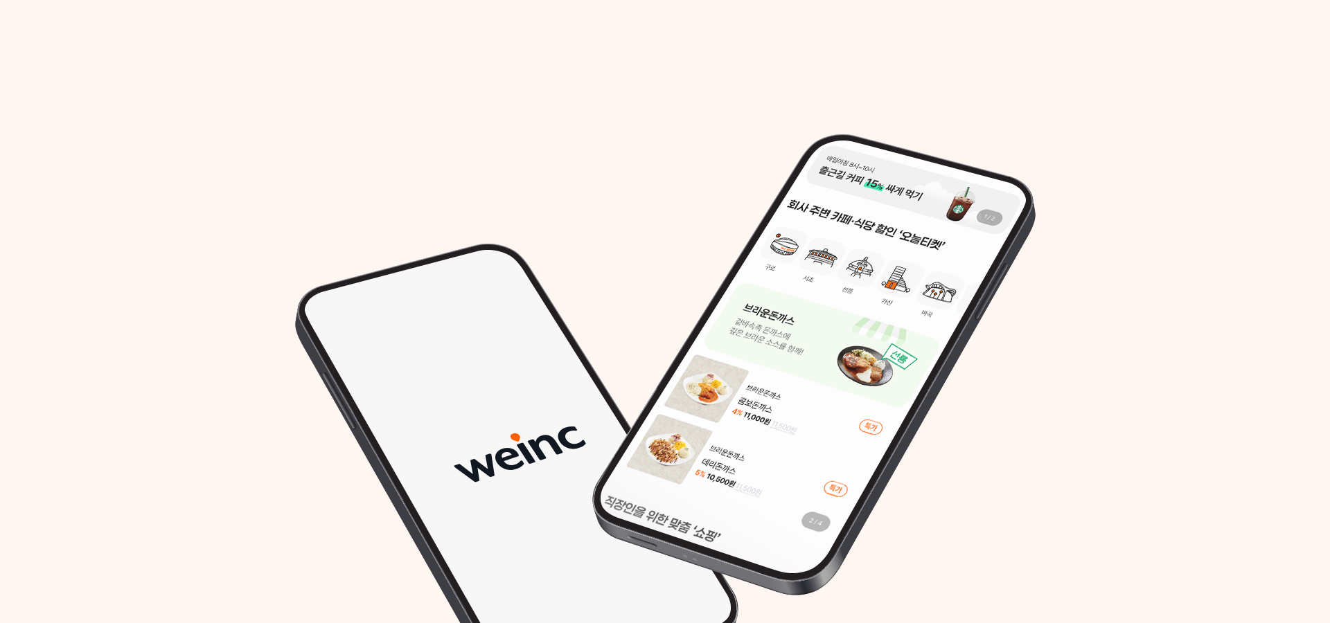 WEINC 미리보기 Preview 윙크 미리보기 오늘티켓 회사 근처 맛집/카페 등을 할인받아 이용할 수 있으며,윙크오더를 통해 포장 및 예약까지 가능합니다 브랜드티켓 전국 어디에서나 이용 가능한 인기 브랜드와프랜차이즈 매장의 모바일 쿠폰을 실속있게 구매할 수 있습니다 쇼핑 회사와 일상에서 꼭 필요한 다양한 라이프 맞춤형상품들을 할인가로 구매할 수 있습니다 여행/레저 바쁜 일상을 벗어나 주말과 휴가에 리프레시할 수 있는여행레저 상품으로 에너지를 채울 수 있습니다 제휴혜택 생활편의, 헬스케어, 학습도서 등 다양한 카테고리의복지 헤택을 한번에 도입할 수 있습니다 CUSTOM 기업 맞춤형 서비스 윙크는 앱 서비스에 그치지 않고, 기업의 니즈와 임직원 만족을 함께 고려한 이벤트·팝업·특판 프로그램을 운영합니다.다양한 파트너사와 협업해 명절과 기념일 등 기업 맞춤형 혜택을 제공합니다. 기업 이벤트 기업의 복지 예산과 목적에 맞춰 이벤트 기획 및 운영을 대신합니다.파트너사와의 협업을 통해 예산 활용 효율을 높이고,임직원 만족으로 이어지는참여 경험을 만듭니다. 오프라인 팝업 기업 니즈에 맞춘 콘셉트로 사내 공간과 오프라인 접점을 활용한팝업 부스를기획·운영합니다.임직원이 직접 체감할 수 있는 경험으로 이벤트 효과를 현장에서 완성합니다. BIZ 특판/판촉 기업 일정과 예산에 맞춰 파트너사와 함께 특판 상품을 구성하고 운영합니다. 복지 예산은 더 합리적으로, 임직원에게는 만족도 높은 혜택을 제공합니다.